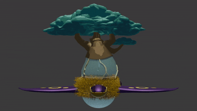This is Tezca’s faithful floating Island Odedde! He is a unique creature born to Tezca’s homeworld. With Odedde, Tezca and Kandi travel on water spouts through the cosmos!